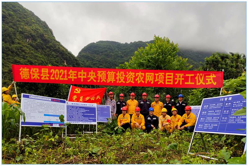 2021年4月28日,公司监理项目:新电力集团德保供电公司足荣供电所念色村巴意台区改造工程、燕峒供电所燕峒村足索台区改造工程、敬德供电所雅里村多雅台区改造工程举行开工仪式,吹响2021年中央资金投资建设项目的先锋号角,同时拉开建设项目的序幕。践行“学百年党史办实事 建惠民电网兴乡村”主题党日活动,攻坚克难,勇攀高峰,力争项目建设任务于2021年11月30日前完工投产。