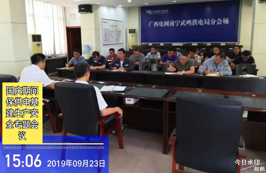 会后,我监理项目部在吴教新总监的主持下,在武鸣项目部召开了《国庆期间保供电基建生产安全会议精神传达》,向项目部全体人员传达本次会议的精神和要求,要求武鸣监理项目全体人员提醒十二分精神,确保保供电工作顺利开展,为祖国的七十周年庆奉献一分绵薄之力。