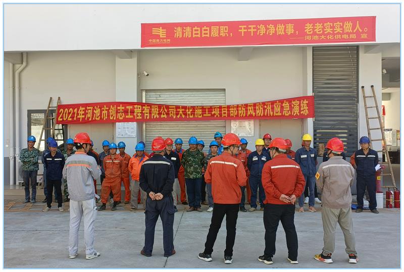 随着雨季的来临,为切实提升各施工班组成员减灾救灾应急处置能力,快速、有效应对汛期可能出现的突发情况,确保人员安全。2021年6月6日大化供电局业主项目部、振安监理、正远监理组织河池市创志工程有限公司大化施工项目部各班组人员开展了防风防汛应急演练。