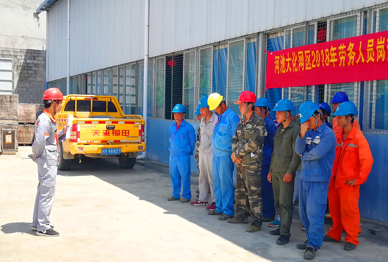 本次培训对2018年新进场劳务人员进行基建现场基本技能、常识进行培训宣贯及实操,旨在强化劳务人员安全意识,统一、规范现场安装工艺水平。逐步扭转一直以来农网项目点多面广、劳务队伍施工分散、安装工艺标准不统一导致的台区工艺多样化,无行之有效的样版工艺、样版台区局面,为河池大化网区台区建设打造优质工程项目储备基础劳务人才,着力打造优质台区项目。