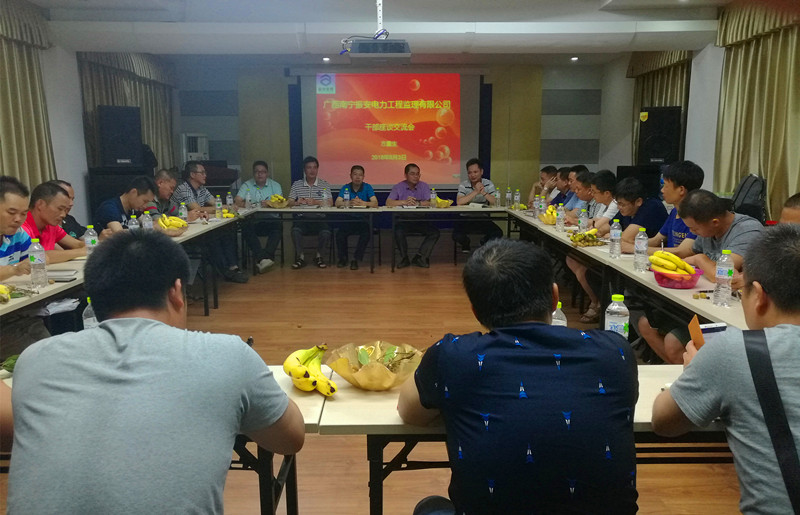 2018年8月3日晚19:00-22:00,公司在3楼会议室召开公司干部座谈会。公司执行董事肖立新、总经理方童生、副总经理梁继忠,与公司各职能部门负责人、各业务区负责人以及见习主管助理等26名公司干部进行座谈,广泛听取了参会人员对公司的管理建议、工作中遇到的问题解决以及今后工作设想。