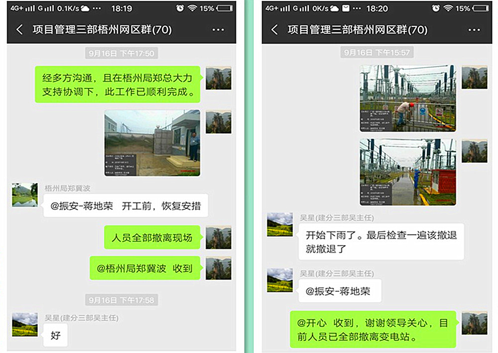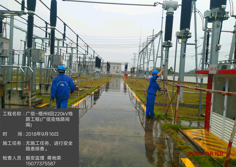 2018年9月16日上午,公司监理的“广信~禤州II回220kV线路工程(广信变线路间隔)”项目,安全围网拆除后,梧州监理项目部监理人员最后对变电站间隔进行安全隐患排查发现护栏松动,立即联系贵州宏电公司项目部负责人,安排人员及工具进行排险工作。