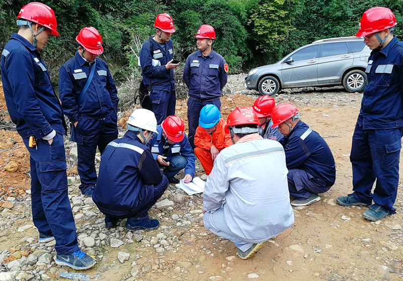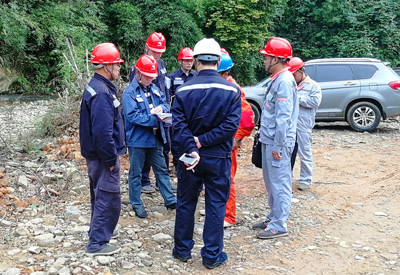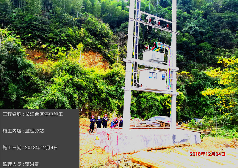 2018年11月04日,南网秋冬季安全检查组配电班长陈伟贤等人到公司监理项目永福35kV兴隆站10kV兴泡口线912兴隆村长江岭背公变台区改造工程停电接火施工现场检查指导。